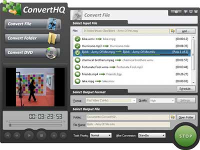 ConvertHQ là một giải pháp toàn diện cho multimedia nhằm chuyển đổi cho đủ loại audio và video files với chất lượng cao nhất. Tiện ích này hỗ trợ hầu hết mọi định dạng multimedia thông dụng nhất ở máy tính, hay dụng cụ PDA, cả điện thoại di động.. như là iPod Audio & Video, PSP Audio & Video, MPEG-1, MPEG-2, MPEG-4, WMV, WMA, MP3, M4A, M4V, Real, AVI, DivX, Xvid, Matroska, OGG Media, 3GPP, 3GPP2, Play-Yan, QuickTime và còn nhiều hơn thế nữa.