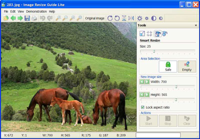 Thay vì phải tốn nhiều công sức để loại bỏ một chi tiết thừa và còn phải chỉnh sửa lại bức ảnh sao cho tạm cân đối, với Image Resize Guide, bạn chỉ cần hai thao tác đơn giản là đánh dấu chi tiết muốn loại bỏ rồi click nút Start là mọi việc sẽ đâu vào đấy trong thời gian cực ngắn.